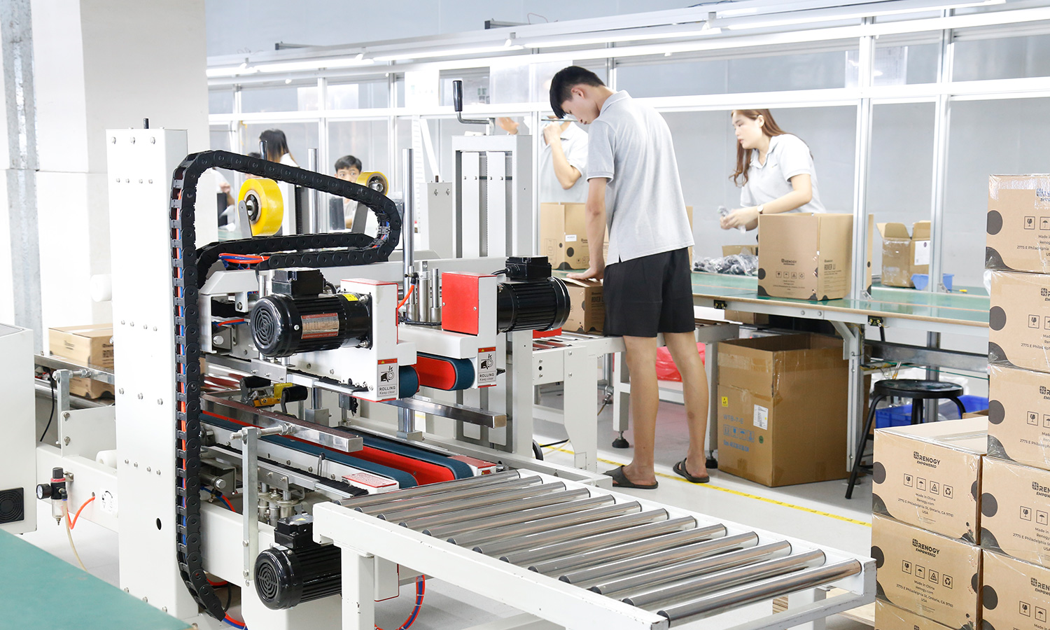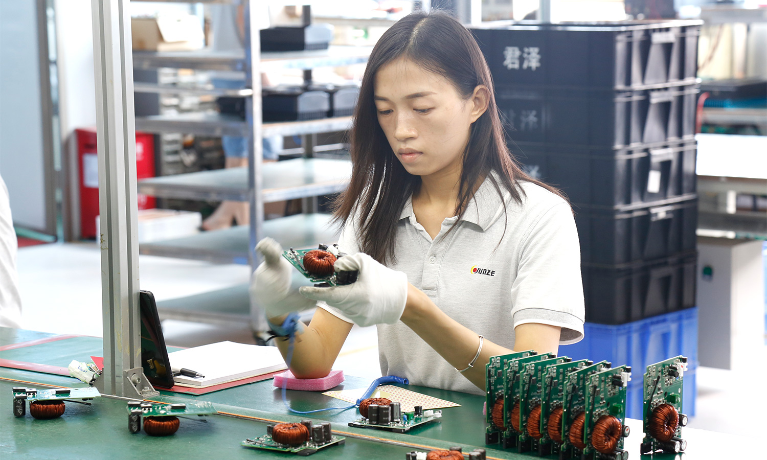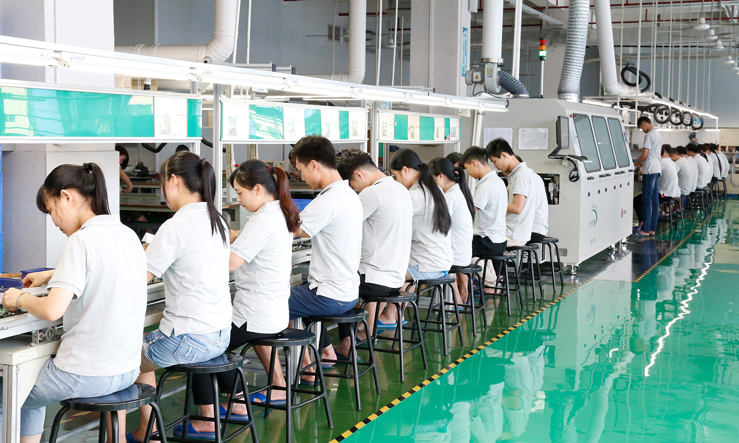 现有组装流水线2条现代化的生产线(可随时扩成4条),对太阳能控制器,逆变器,储能、工业降噪耳机、等工业产品组装经验丰富 ;能够生产绝大部分的数码电子产品,极强的综合生产能力,日产能达到1万PCS以上。防静电PVC空调车间,配备有老化房,测试房,成品测试隔音隔离房等,设备先进、完善,可进行各种产品镭雕、组装、老化、测试、包装等生产。